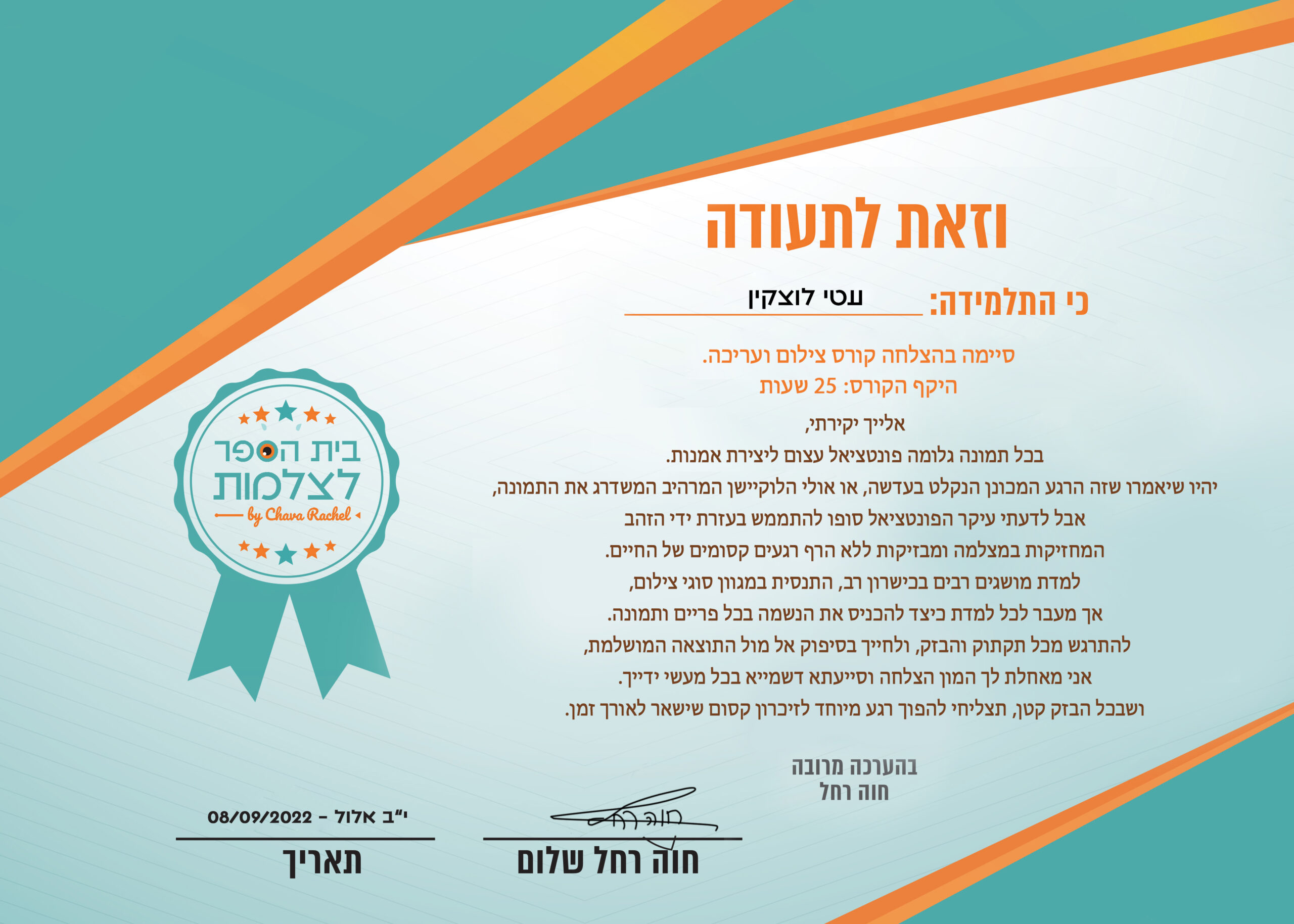 תקבלי מבית הספר לצלמות: תעודת צלמת מקצועית מוסמכת.